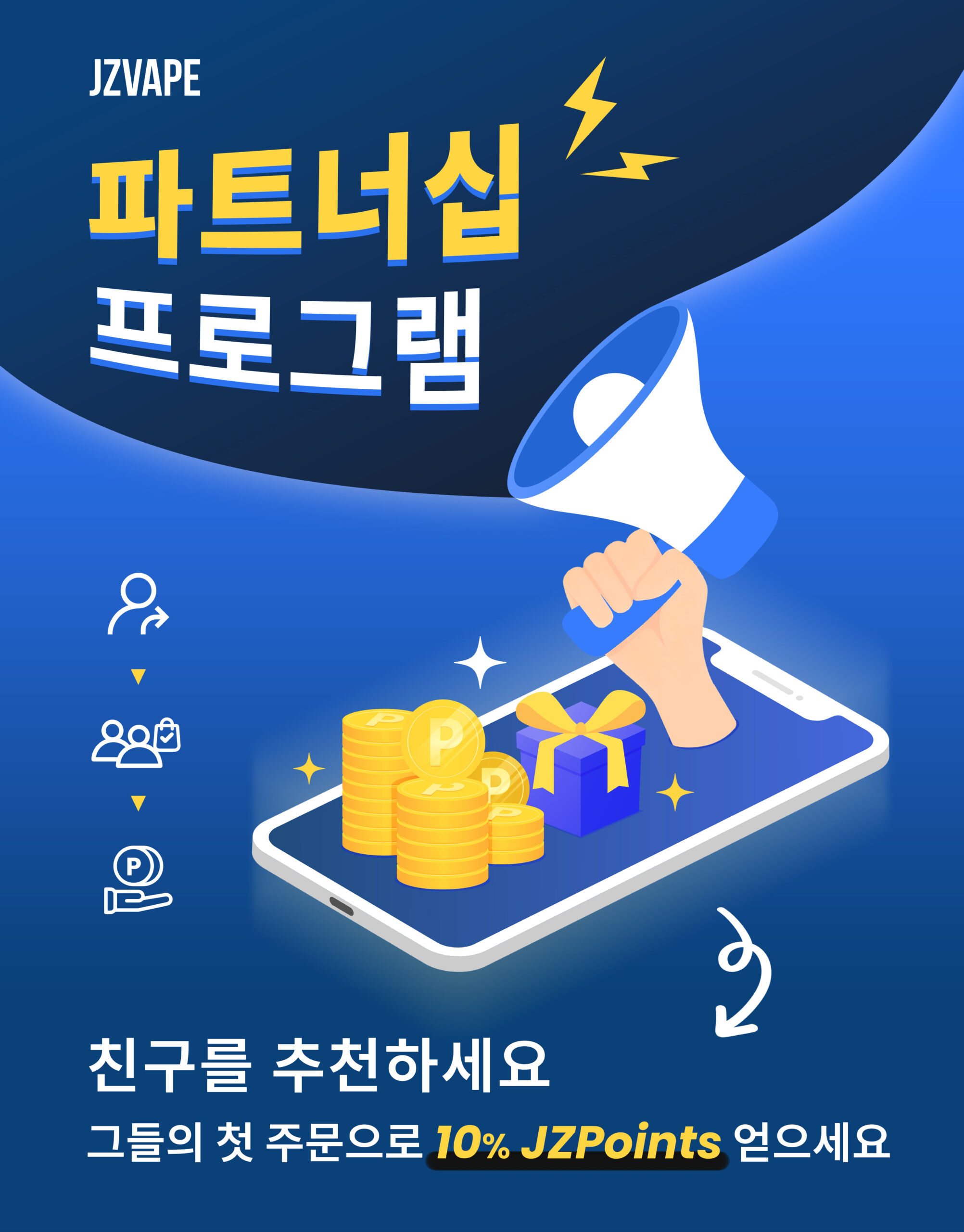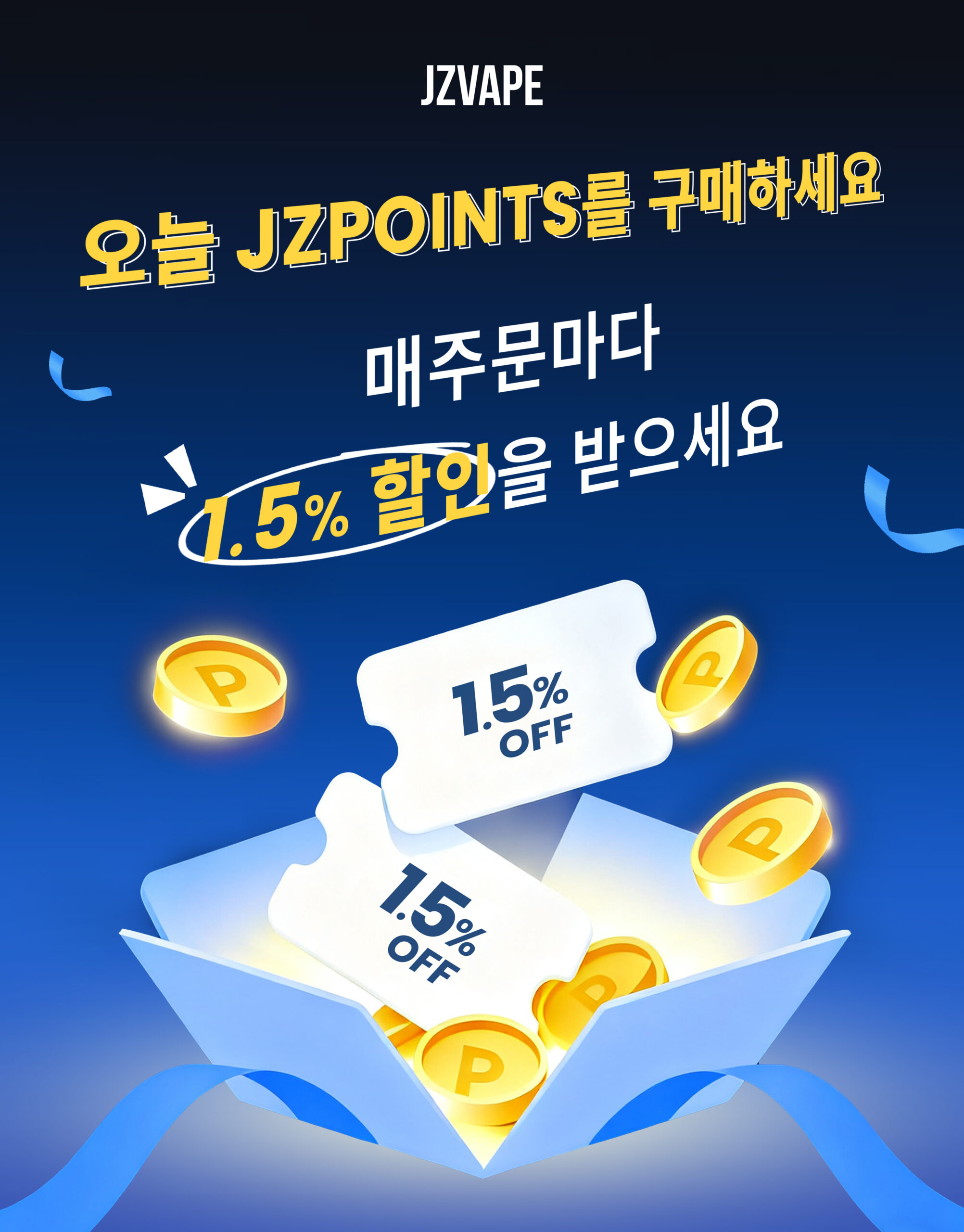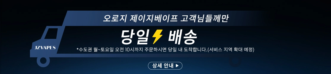 일부 지역 8시간 당일 배송 서비스 개시! 메뉴에서 당일도착 ⚡️ 아이콘을 클릭하여 고객님의 주소가 당일 도착이 가능한 주소지인지 확인하세요. 오직 JZVapes라서 가능한 | 모든 주문의 배송 평균 소요일 (영업일 기준 1~2일이내)