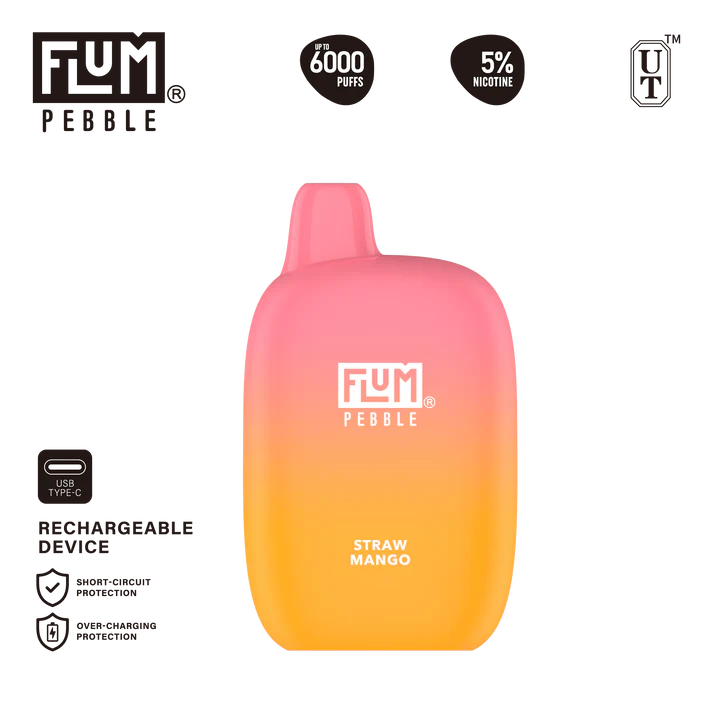 The Flum Pebble 6000 Straw Mango Disposable Vape delivers a vibrant fruit flavor experience designed for adult users who enjoy tropical fruit combinations. As part of the popular Flum Pebble disposable vape lineup, this device provides both bold flavor performance and convenient disposable vape functionality.