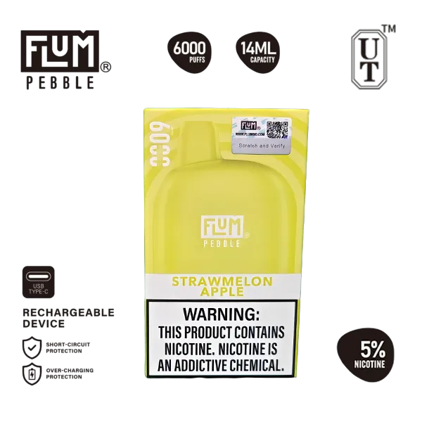 The Flum Pebble StrawMelon Apple Disposable Vape delivers a vibrant fruit flavor combination designed for adult users who enjoy sweet and refreshing disposable vape flavors. As part of the Flum Pebble series, this device offers convenient plug-and-use vaping together with bold fruit flavor performance.