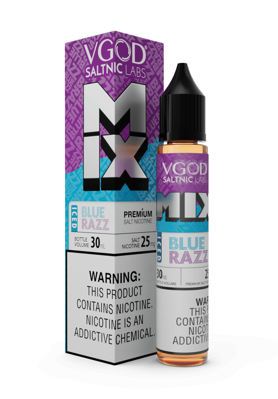 VGOD MIX Iced Blue Razz 50mg is a high-strength salt nicotine e-liquid featuring a sweet-tart blue raspberry flavor with a light cooling finish. The blue razz comes through clearly on the inhale, followed by a gentle ice note that keeps the flavor sharp and balanced without overpowering it.
