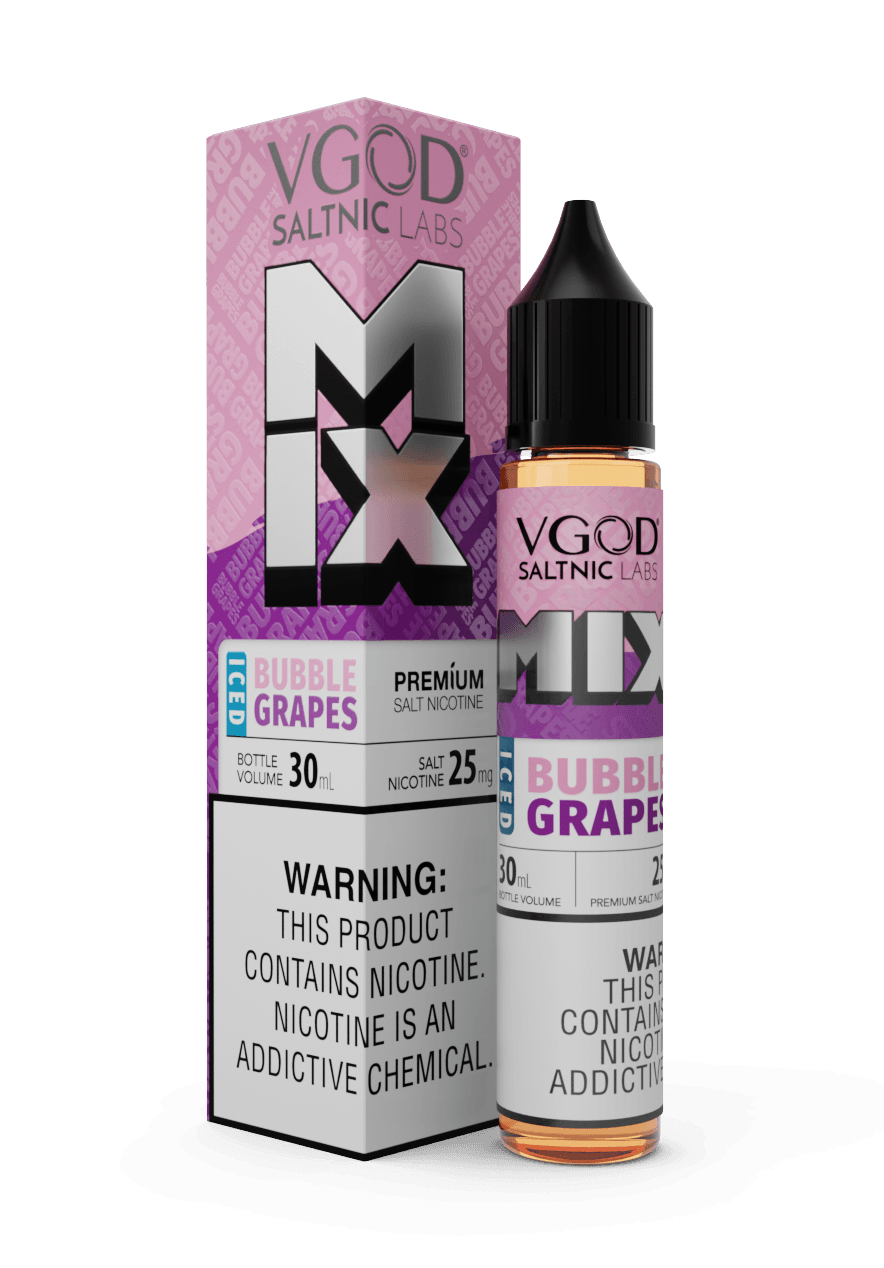 VGOD MIX Iced Bubble Grapes 50mg is a high-strength salt nicotine e-liquid that blends sweet grape candy flavor with a light cooling finish. The grape comes through first with a soft, rounded sweetness, followed by a gentle ice note that clears the palate without overpowering the flavor.